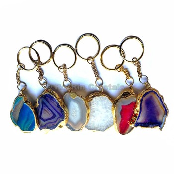 Bea çok satan Mix akik dilim Metal anahtarlık ile yuvarlak kaplama: mix akik dilim anahtarlık ile Metal yuvarlak kaplama