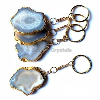 Çevrimiçi kuvars akik dilim Metal anahtarlık ile yuvarlak kaplama: kuvars akik dilim anahtarlık ile Metal yuvarlak kaplama